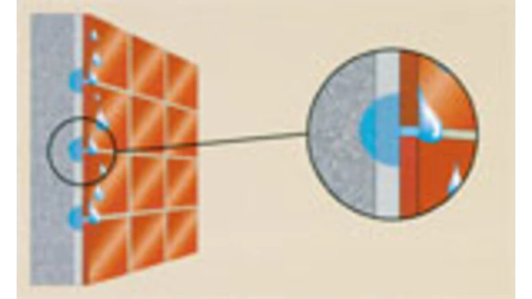 Keo dán gạch và keo chà ron là vật liệu rỗng nhân tạo, do đó nước có thể thấm qua các kẻ ron, thấm xuống lớp gạch và thấm tới lớp nền. Một vài điều cần phải xem xét khi tiến hành lát gạch ở khu vực ngoài trời như sau: - Sự ảnh hưởng đến các tính năng của keo dán gạch khi tiếp xúc với nước - Cấu kiện cần phải đủ vững chắc để có thể chịu thêm tải trọng của lớp keo dán gạch, lớp gạch và keo chà ron. Sân thượng cần được thiết kế có độ dốc để thu nước mưa về một chỗ. Thêm vào đó, nên có một hệ thống chống thấm bên dưới lớp gạch để tránh trường hợp nước bị rò rỉ xuống khu vực bên dưới.