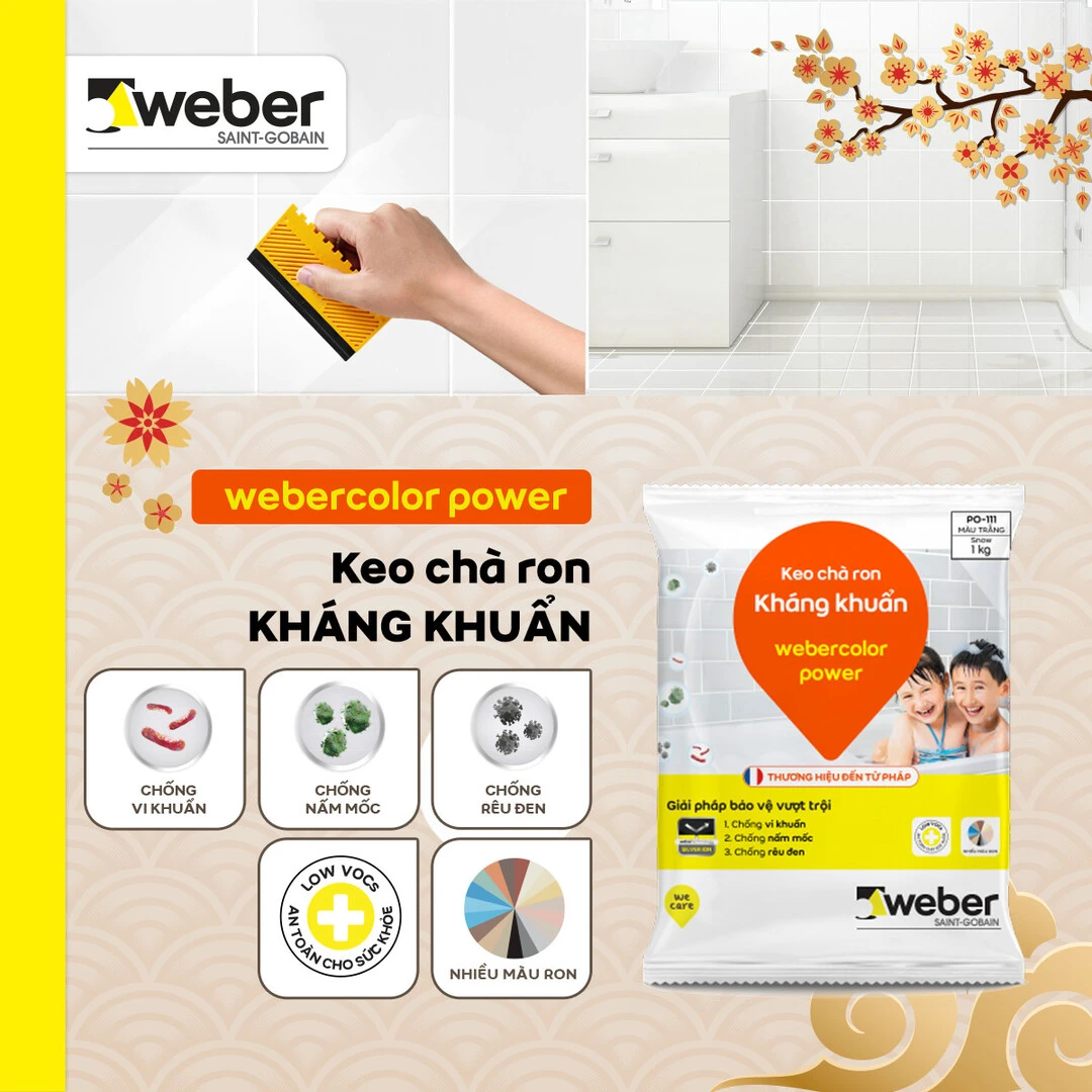 Webercolor Power là dòng bột trét gạch chuyên dùng cho khu vực ẩm ướt với những tính năng vượt trội như: