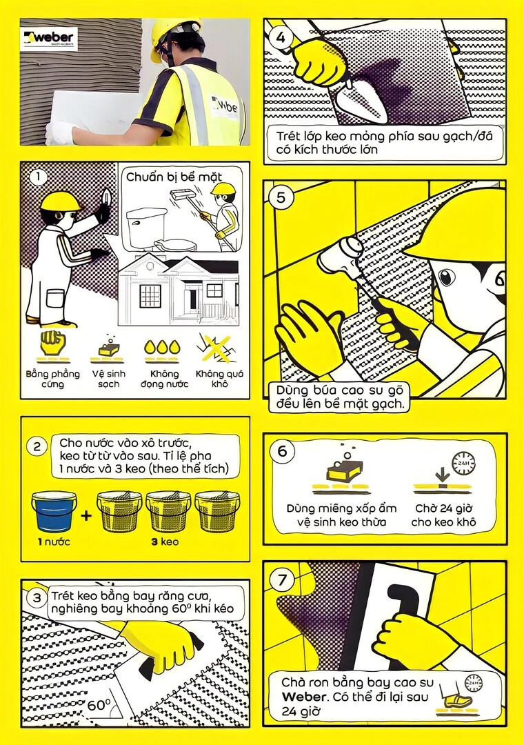 Hãy tham khảo hướng dẫn cách pha keo dán gạch sau đây của Weber nếu bạn vẫn đang tìm kiếm về một tỷ lệ và cách pha trộn đúng chuẩn: