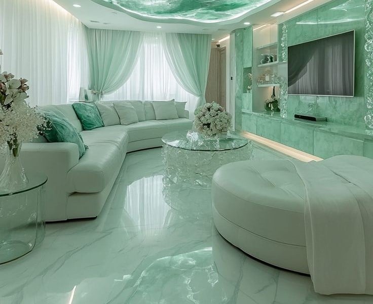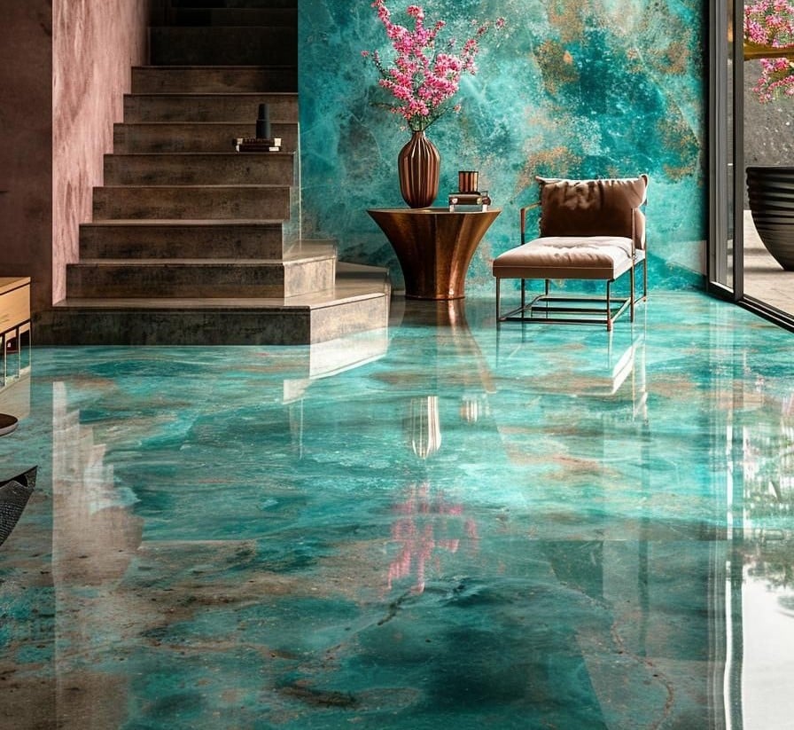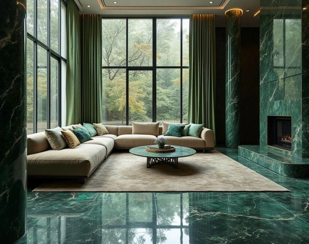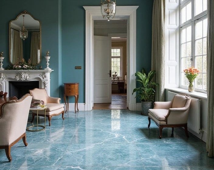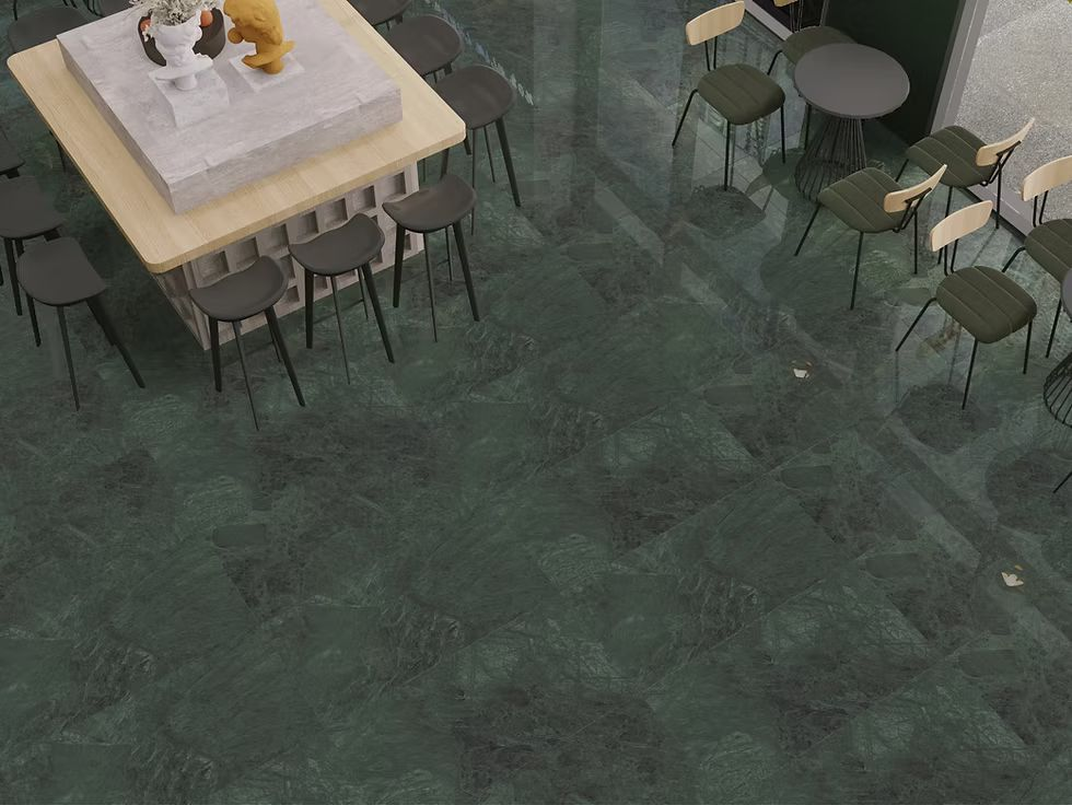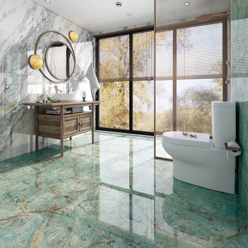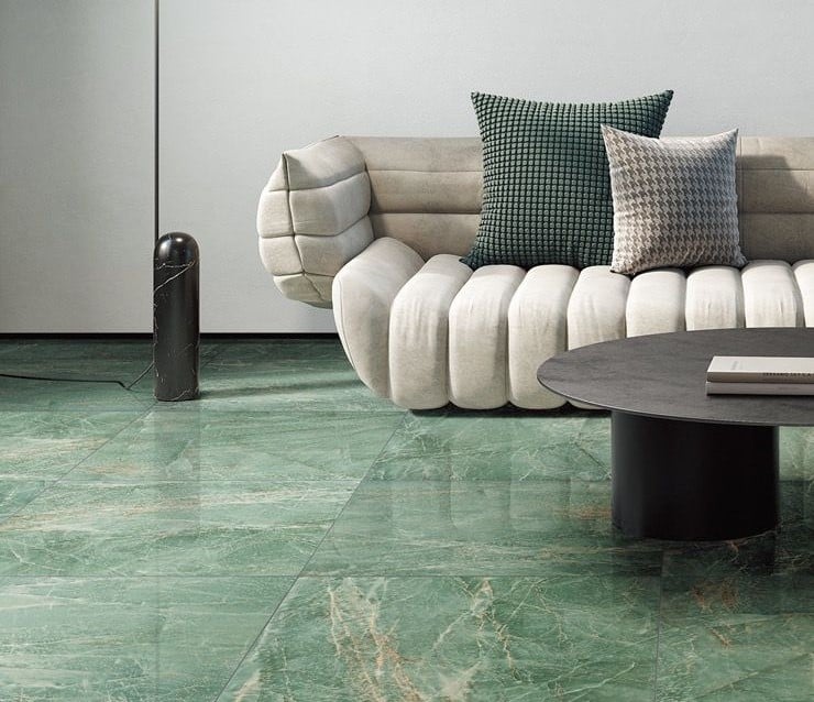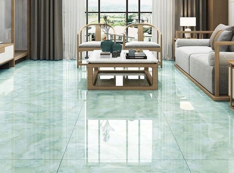 Gạch lát nền màu xanh ngọc bích rất được ưa chuộng tại các công trình có thiết kế sang trọng, đẳng cấp. Gam màu này mang lại hiệu ứng thị giác vô cùng ấn tượng, đặc biệt là với các mẫu gạch giả đá có đường vân đa dạng. Hơn nữa, màu xanh ngọc bích cũng rất dễ dàng để kết hợp với nội thất, giúp bạn đa dạng hóa các lựa chọn cho ngôi nhà của mình thêm phần tiện nghi.