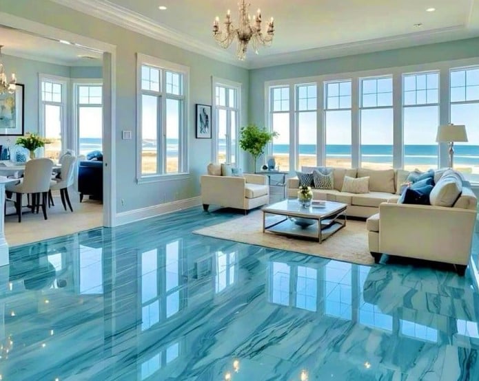 Xét về yếu tố thẩm mỹ, gạch lát nền màu xanh mang đến cảm giác thoải mái, dễ chịu cho không gian sống. Tùy vào thiết kế nội thất, bạn có thể lựa chọn các sắc độ khác nhau, tạo sự hài hòa cho tổng thể. Màu xanh thuộc gam màu trung tính, dễ kết hợp với nhiều tông màu nội thất khác nhau, giúp gạch lát nền nhà đẹp và phù hợp với không gian.
