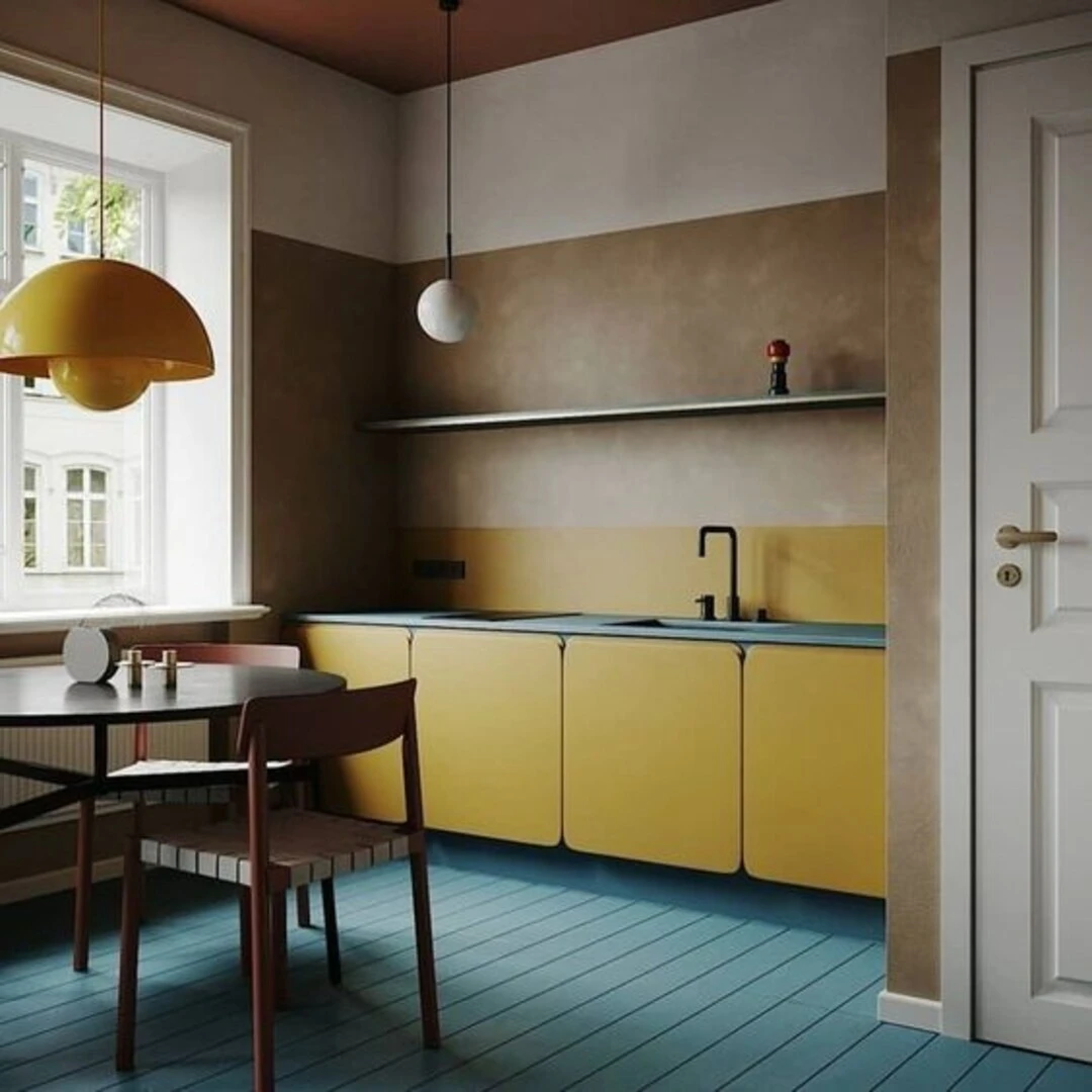 Tông xanh giúp phòng bếp trông sạch sẽ và gọn gàng hơn, kết hợp với ánh sáng tự nhiên sẽ tạo nên cảm giác tươi mới và đầy năng lượng.