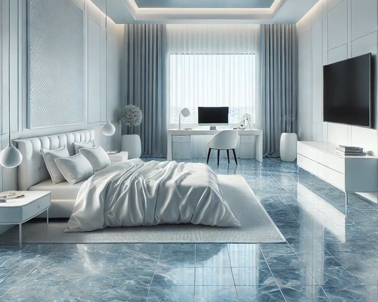 Gạch lát nền màu xanh được ứng dụng linh hoạt trong nhiều không gian nhờ cảm giác mát mẻ và dễ chịu mà gạch mang lại. Tông xanh rất phù hợp cho phòng khách, phòng ngủ, phòng bếp và cả nhà vệ sinh, giúp không gian thêm thanh thoát, nhẹ nhàng mà vẫn hiện đại.