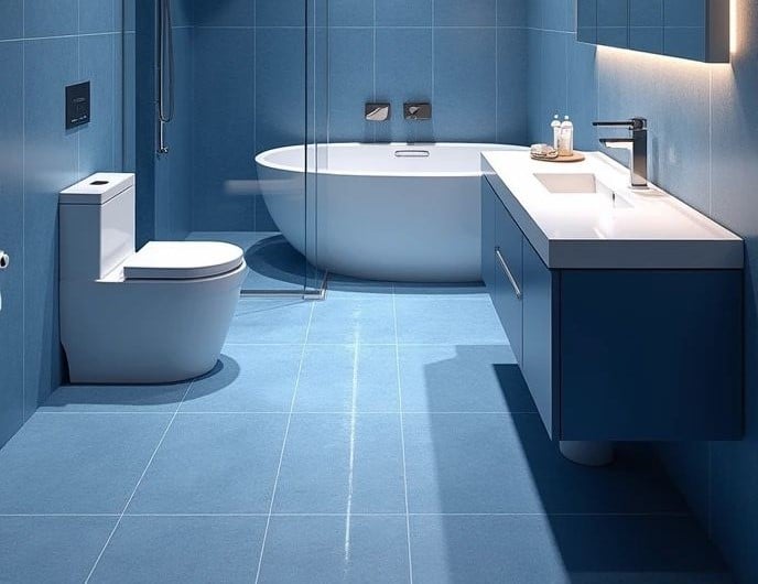Gạch lát nền màu xanh thường được dùng trong nhà vệ sinh để mang lại sự mát mẻ và sạch sẽ.