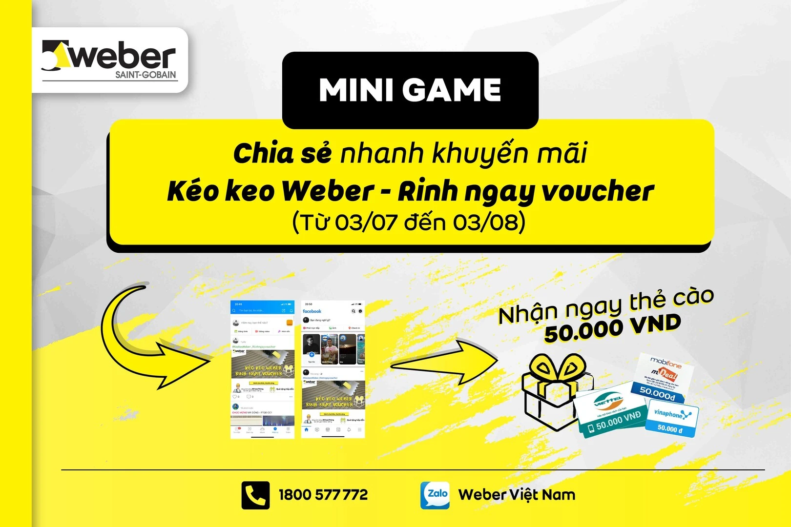 Bước 1: Nhấn chia sẻ bài viết chương trình khuyến mãi "KÉO KEO WEBER - RINH NGAY VOUCHER" bên dưới lên trang Facebook hoặc Zalo cá nhân và chụp lại màn hình chia sẻ bài đăng: https://www.facebook.com/webervn/posts/614610782503591