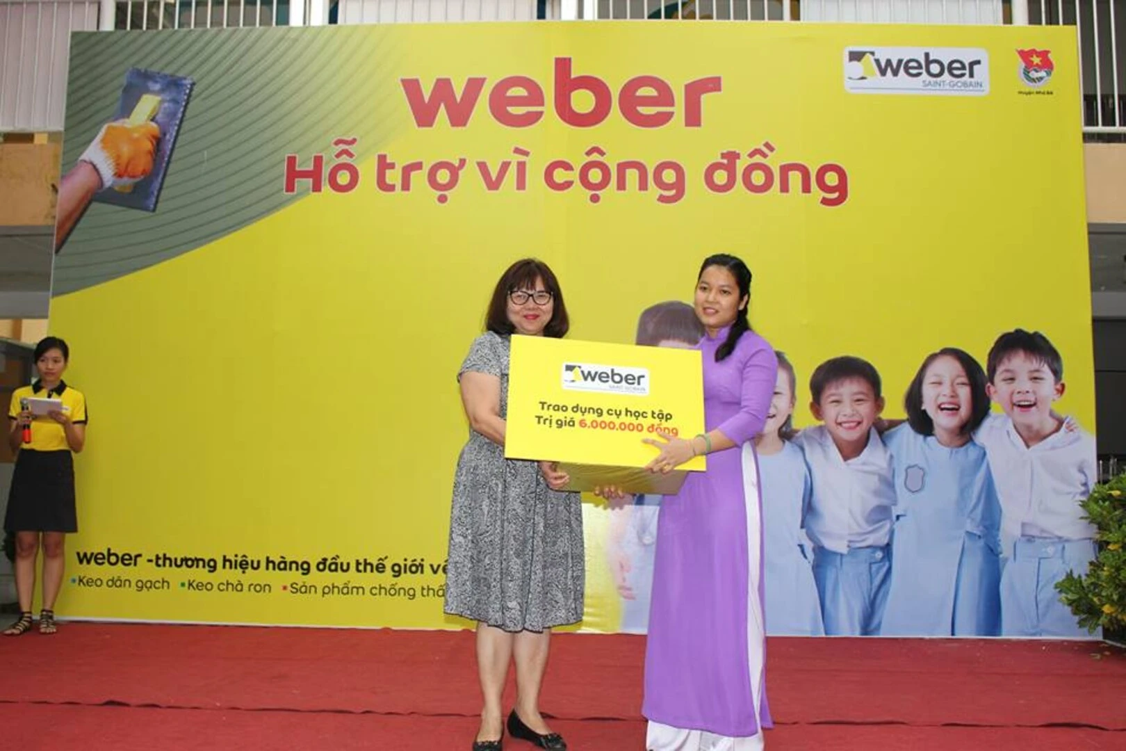 Bên cạnh đó, đại diện keo dán gạch Weber cũng đã trao quà tặng cho các em học sinh của trường. Phần quà bao gồm các dụng cụ học tập thiết yếu. Ngoài ra, những phần học bổng giá trị cũng đã được Weber trao cho các em có hoàn cảnh gia đình đặc biệt khó khăn. Tất cả những phần hỗ trợ này là nguồn động viên rất lớn đối các em học sinh tại trường Sao Mai.