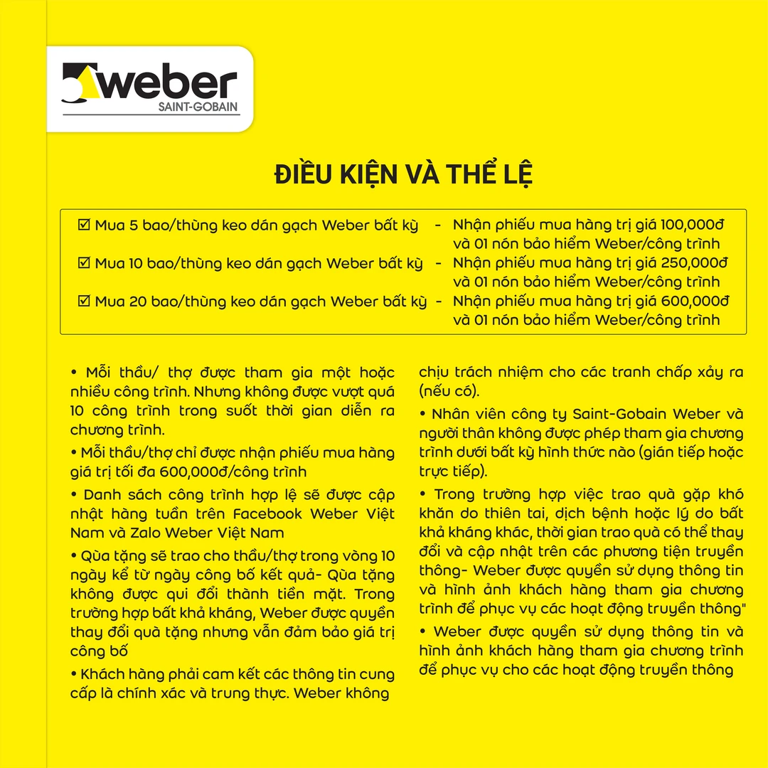Chương trình khuyến mãi dành cho dòng sản phẩm Keo Dán Gạch: CHỌN WEBER – NHẬN VOUCHER