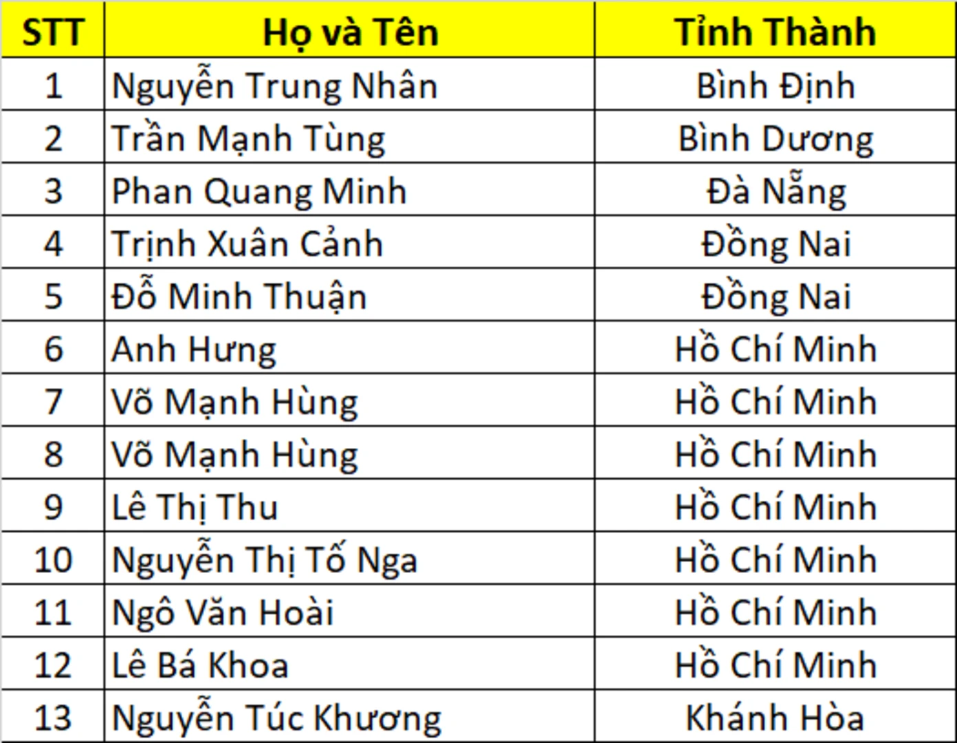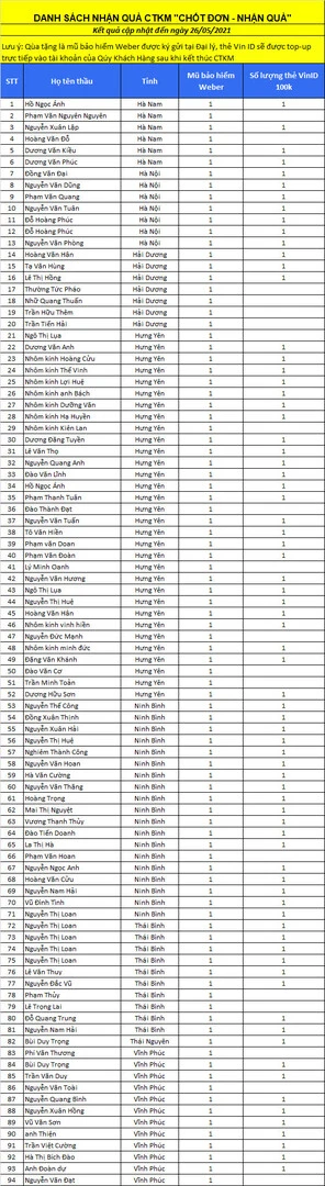 Danh sách thầu thợ nhận quà chương trình CHỐT ĐƠN NHẬN QUÀ đợt 1