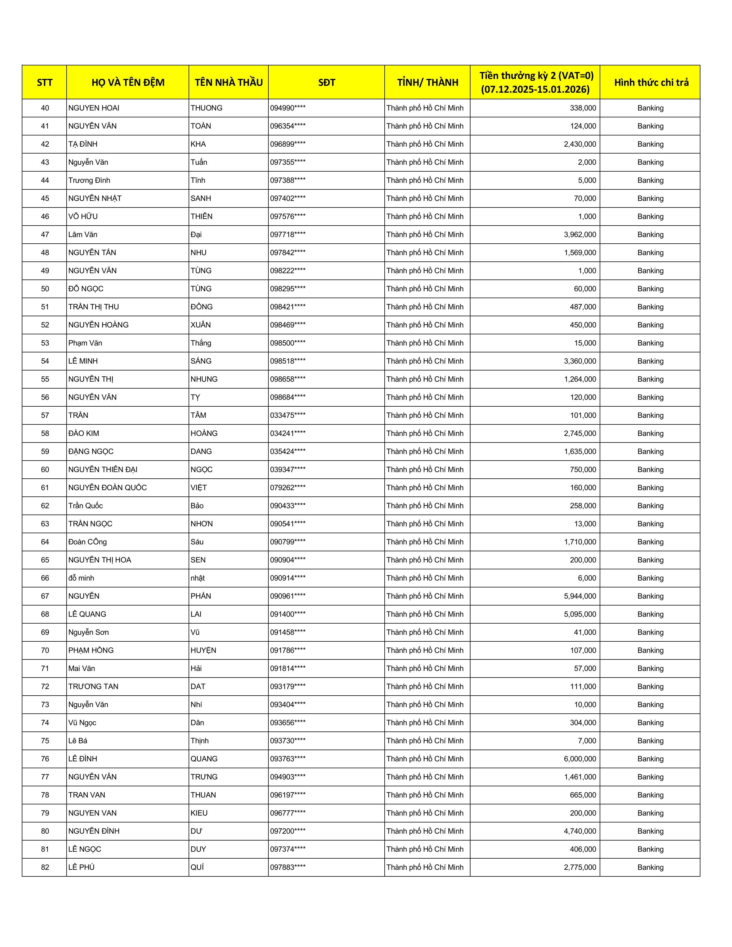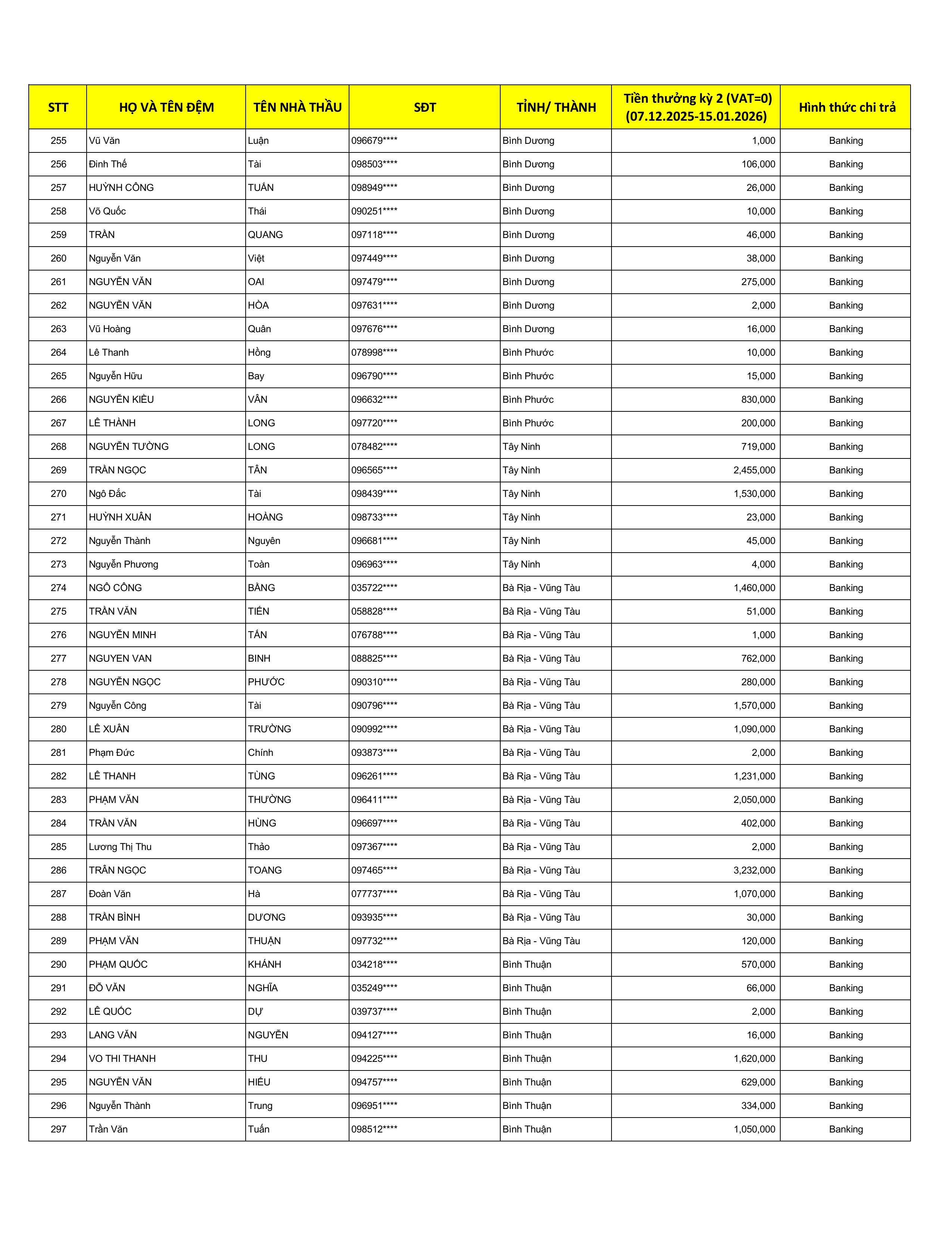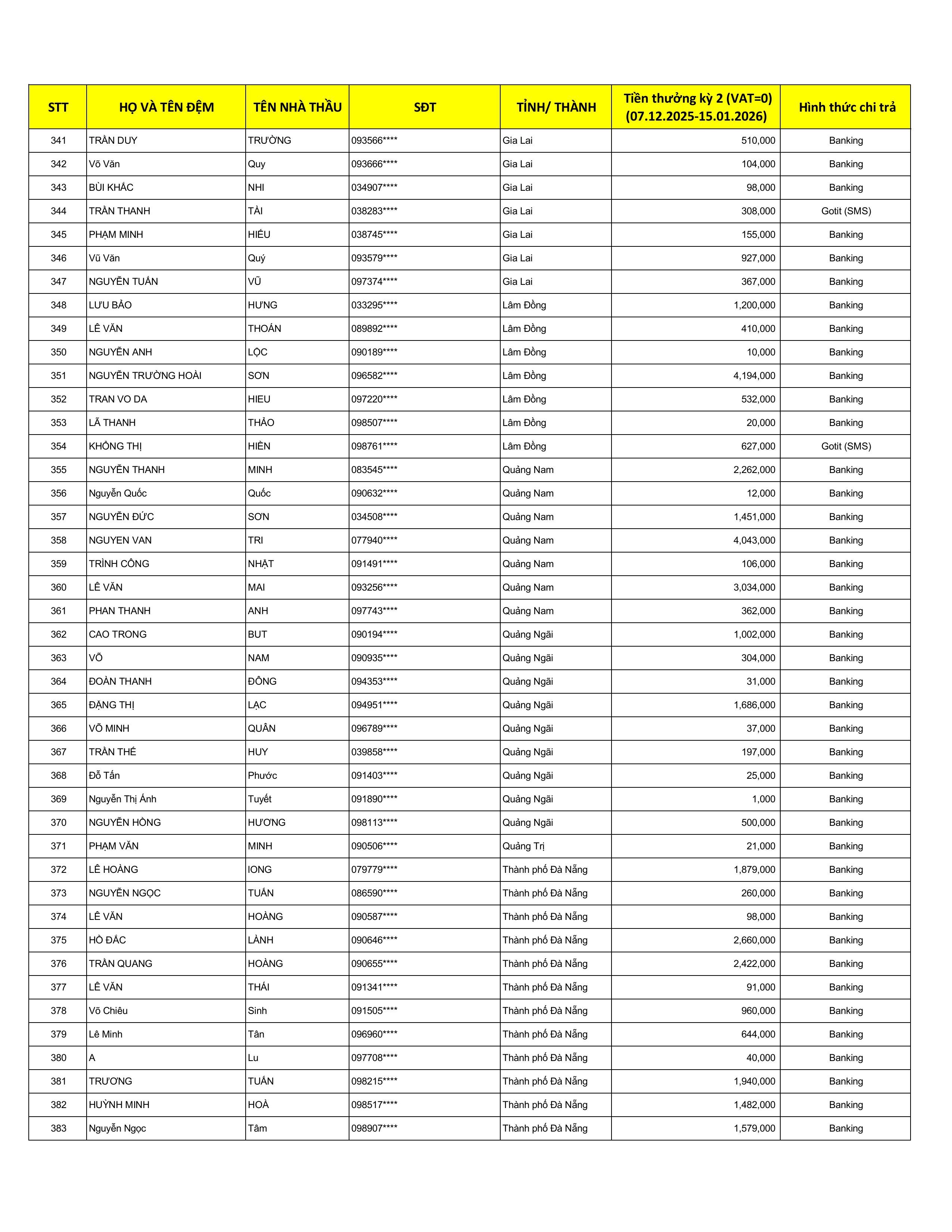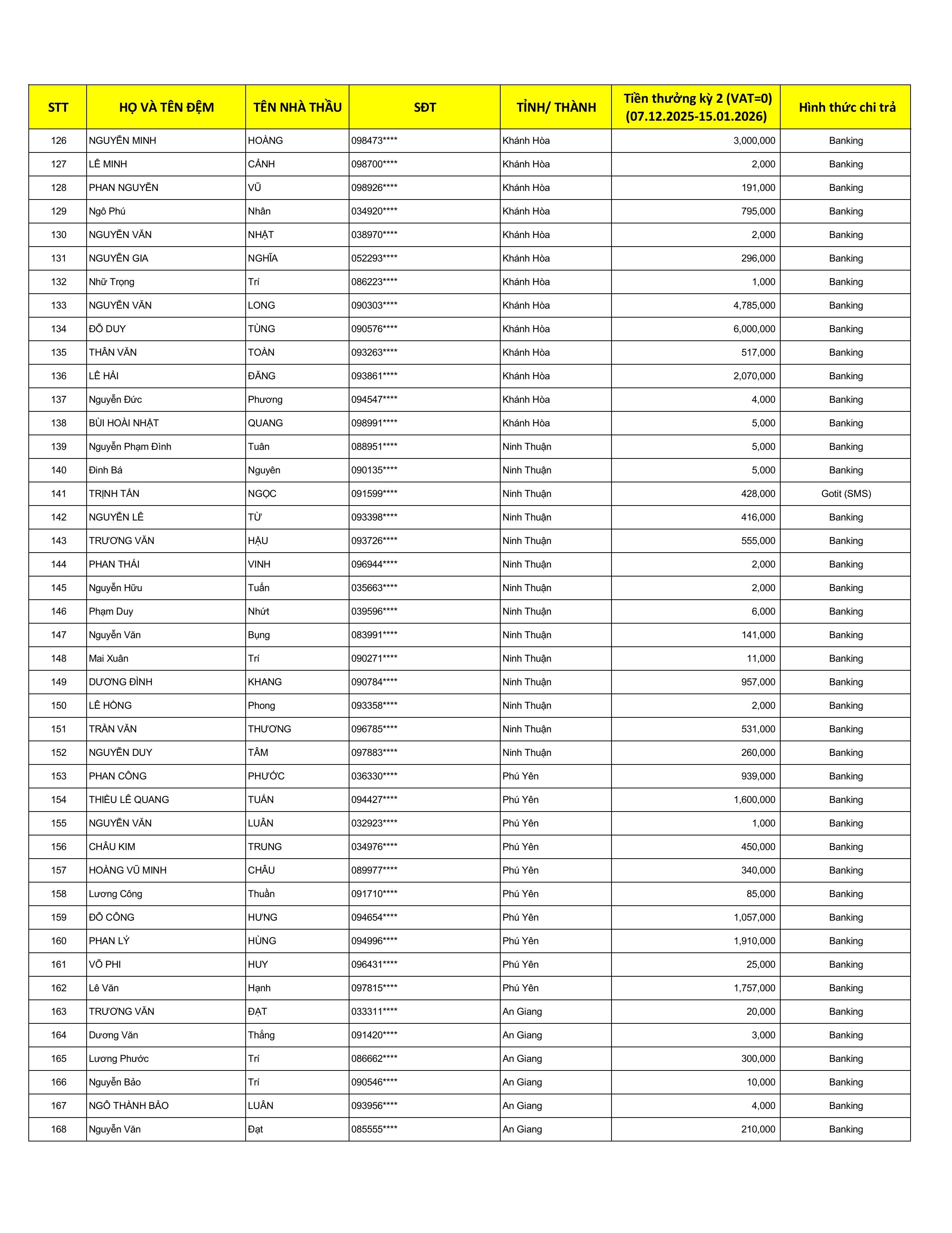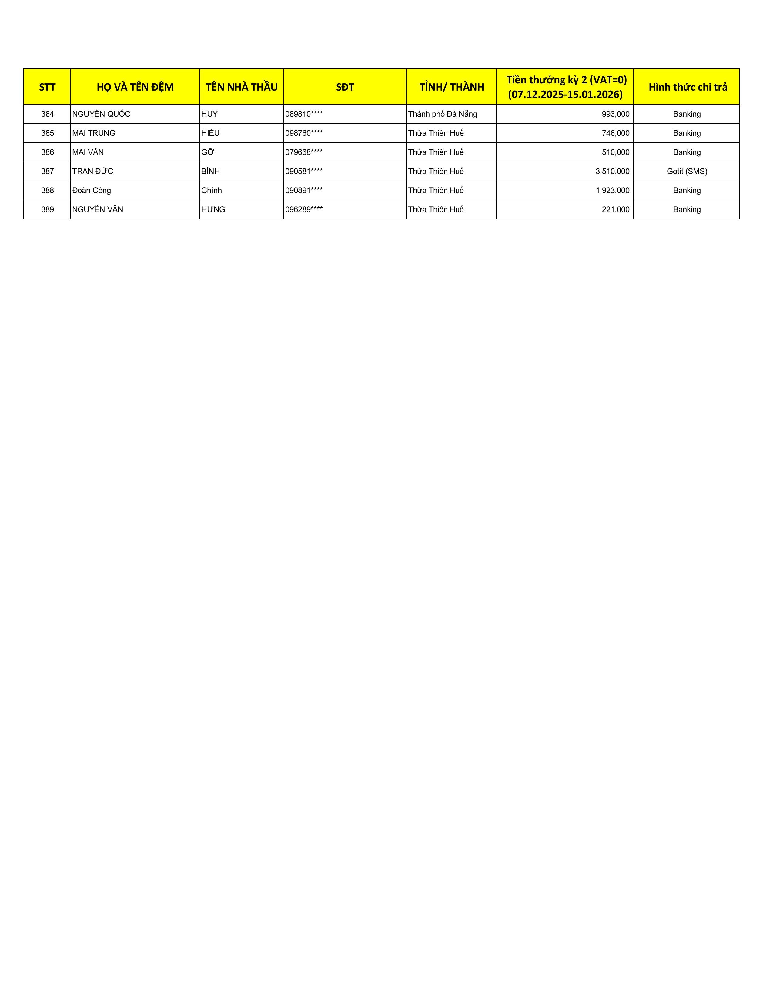 DANH SÁCH KẾT QUẢ CTKM "NHÀ THẦU WEBER MÃ ĐÁO THÀNH CÔNG ĐỢT 2"