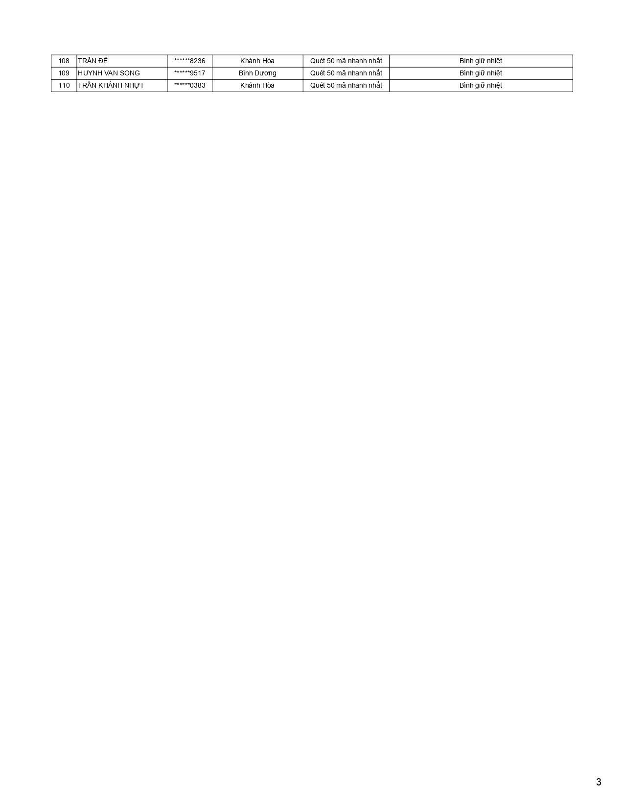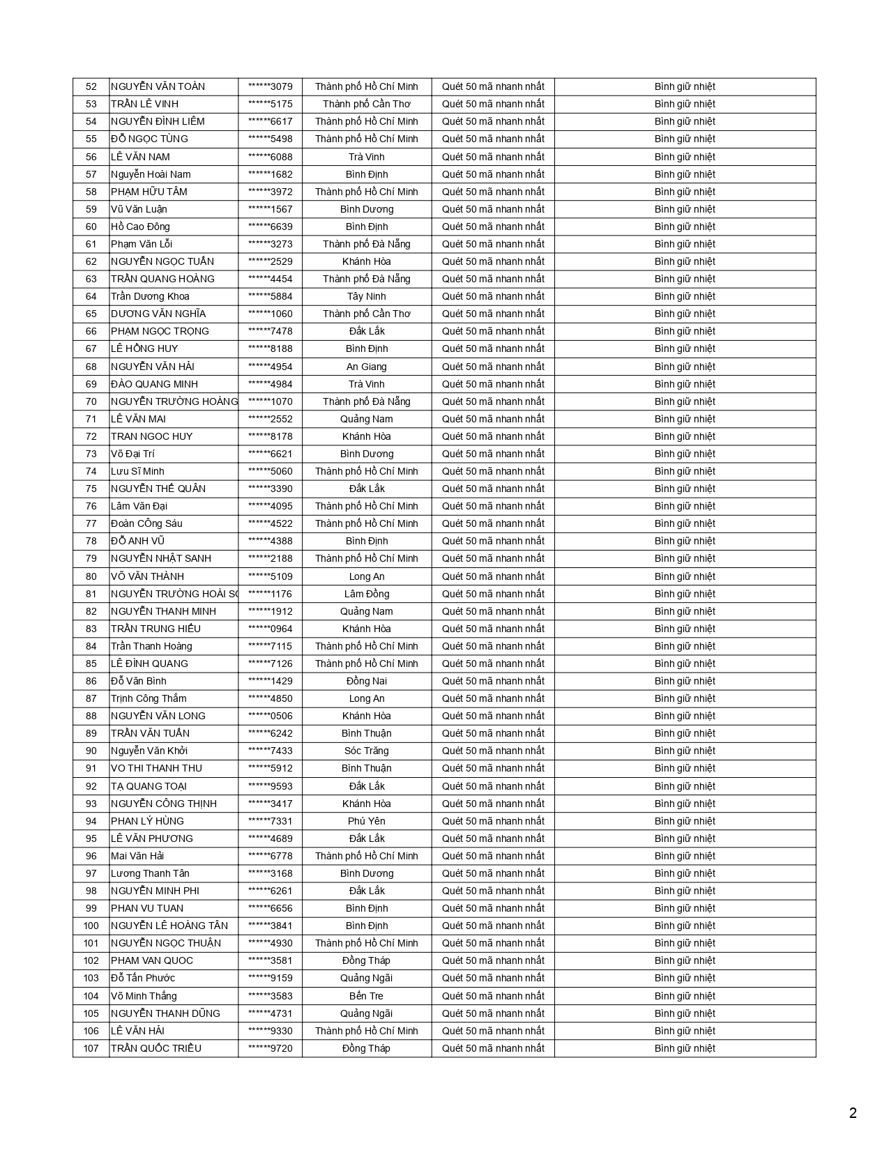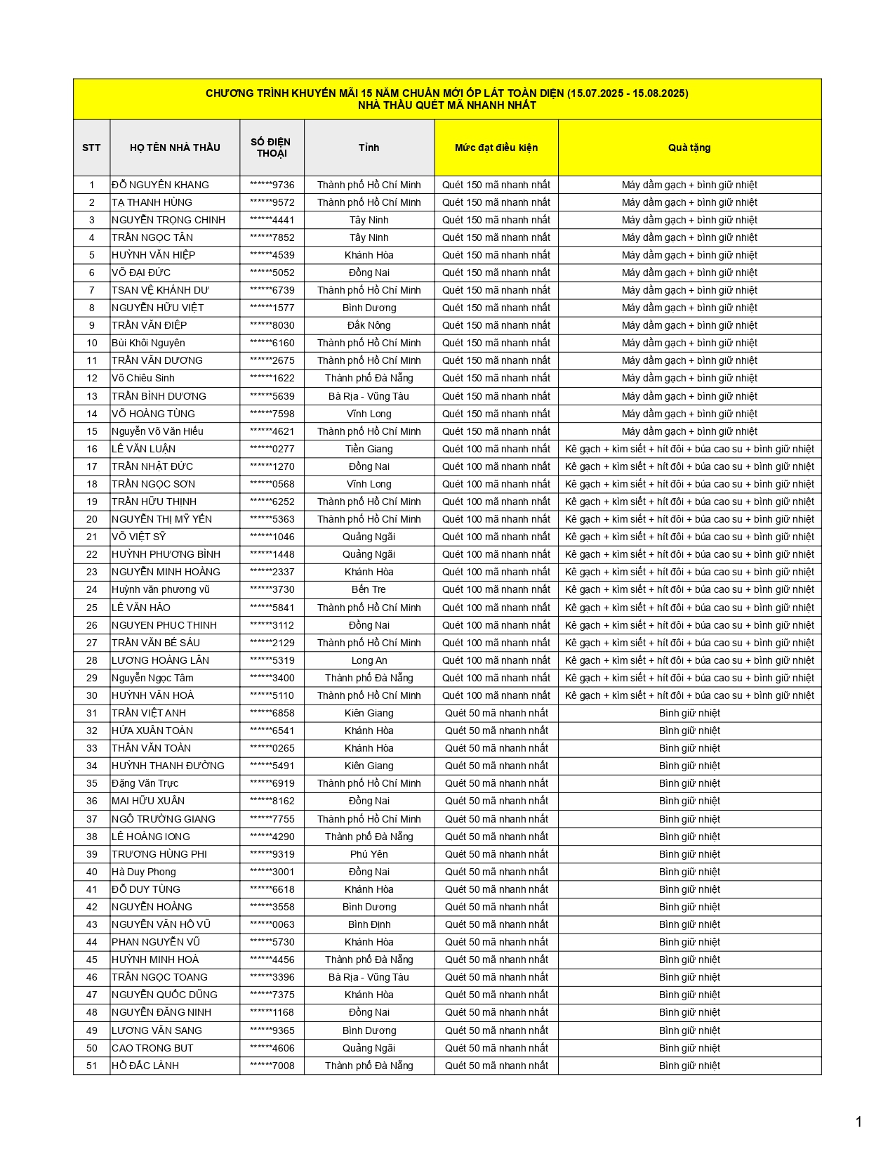 DANH SÁCH KẾT QUẢ ĐUA TOP QUÉT MÃ CTKM "MỪNG WEBER 15 NĂM CHUẨN MỚI ỐP LÁT TOÀN DIỆN"