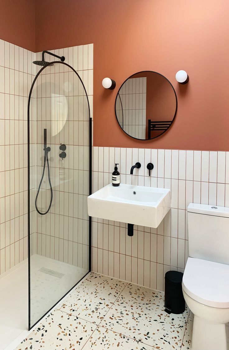 Ngoài ra, bạn có thể tạo hiệu ứng thị giác bằng cách ốp gạch theo chiều dọc (ốp đứng) để ăn gian chiều cao, làm cho không gian trông thoáng đãng hơn