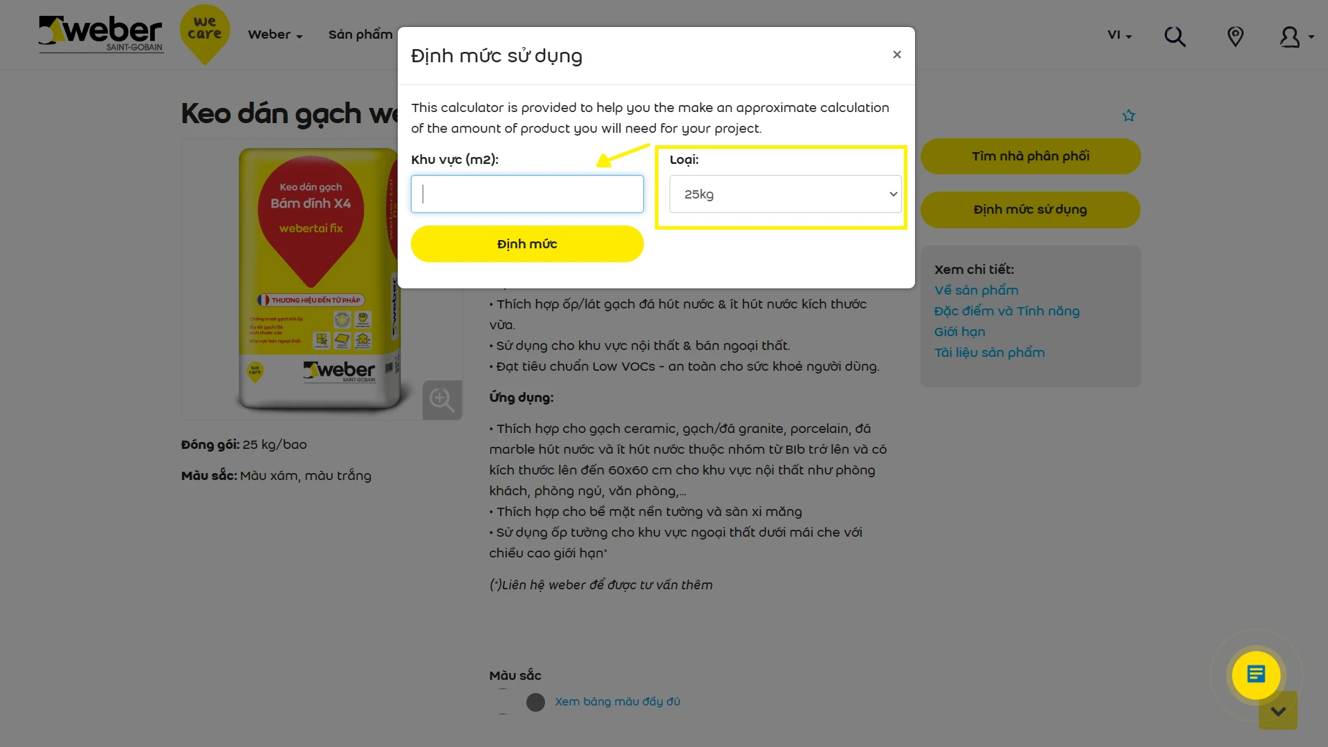 Tính định mức keo dán gạch với Weber vô cùng đơn giản và tiện lợi. Bạn chỉ cần điền thông tin cần thiết vào phần mềm của Weber và chờ kết quả hiển thị trên màn hình.