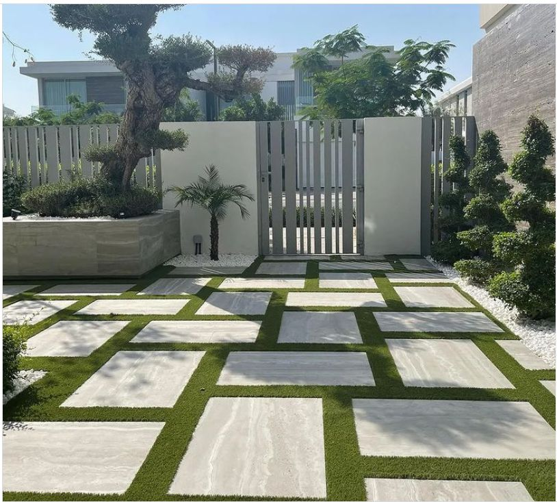 Trong khi đó, với các thiết kế hiện đại có phần khô cứng, gạch họa tiết cỏ thuần túy sẽ làm dịu các góc cạnh kiến trúc, bổ sung sắc xanh cần thiết. Ngược lại, nếu khuôn viên vốn đã nhiều cây cối, việc chọn gạch xen kẽ đá/sỏi sẽ tạo nên sự thanh lịch, tránh làm không gian bị quá tải về màu sắc và chi tiết rườm rà.