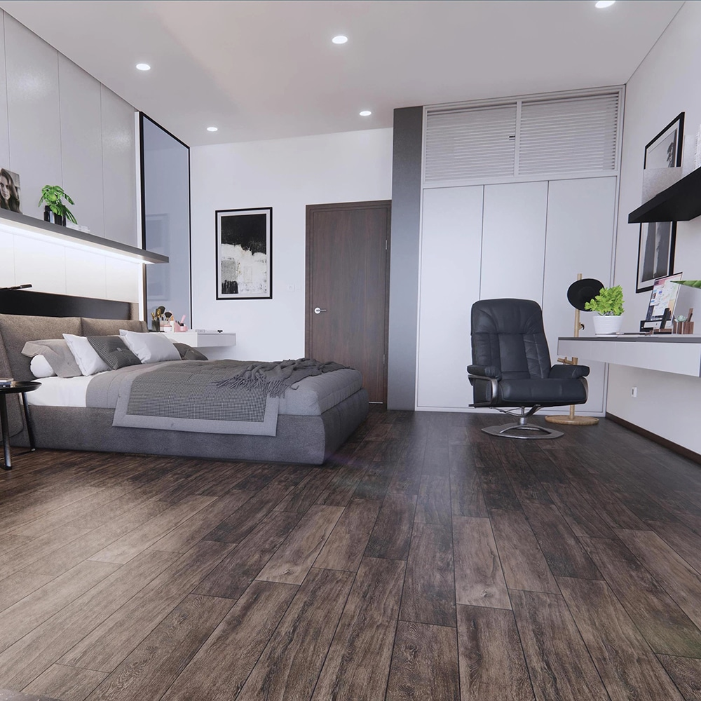 Phòng ngủ là nơi để thư giãn sau một ngày dài làm việc căng thẳng. Để có một không gian nội thất đẹp hài hòa, bạn cần kết hợp gạch giả gỗ ốp tường và lát nền có tone màu ấm cúng, gần gũi nhưng vẫn mang nét đẹp hiện đại, tinh tế như thiết kế dưới đây.