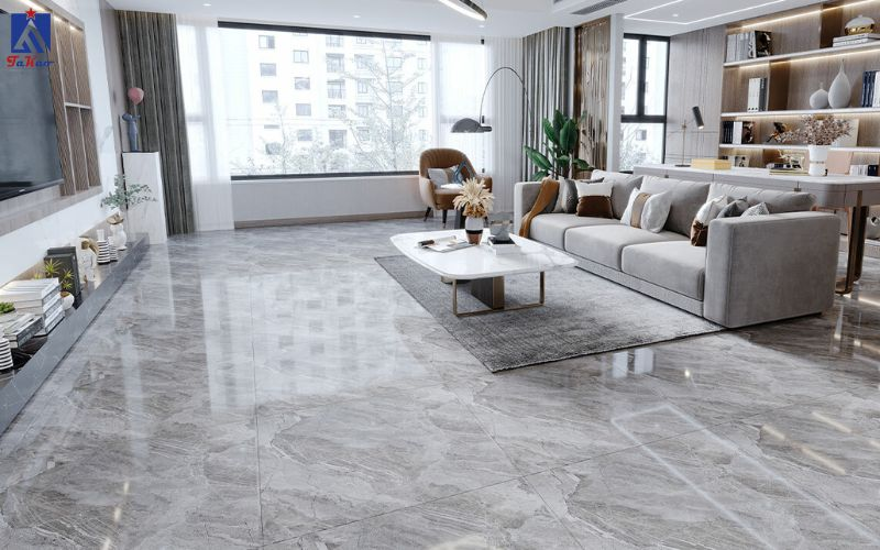 Gạch lát nền màu xám: Từ xám nhạt đến xám đậm, màu này mang lại nét hiện đại và trang nhã. Các gia chủ hay dùng màu xám để tạo độ tương phản, làm nổi bật những món đồ nội thất hoặc chi tiết thiết kế khác trong phòng.