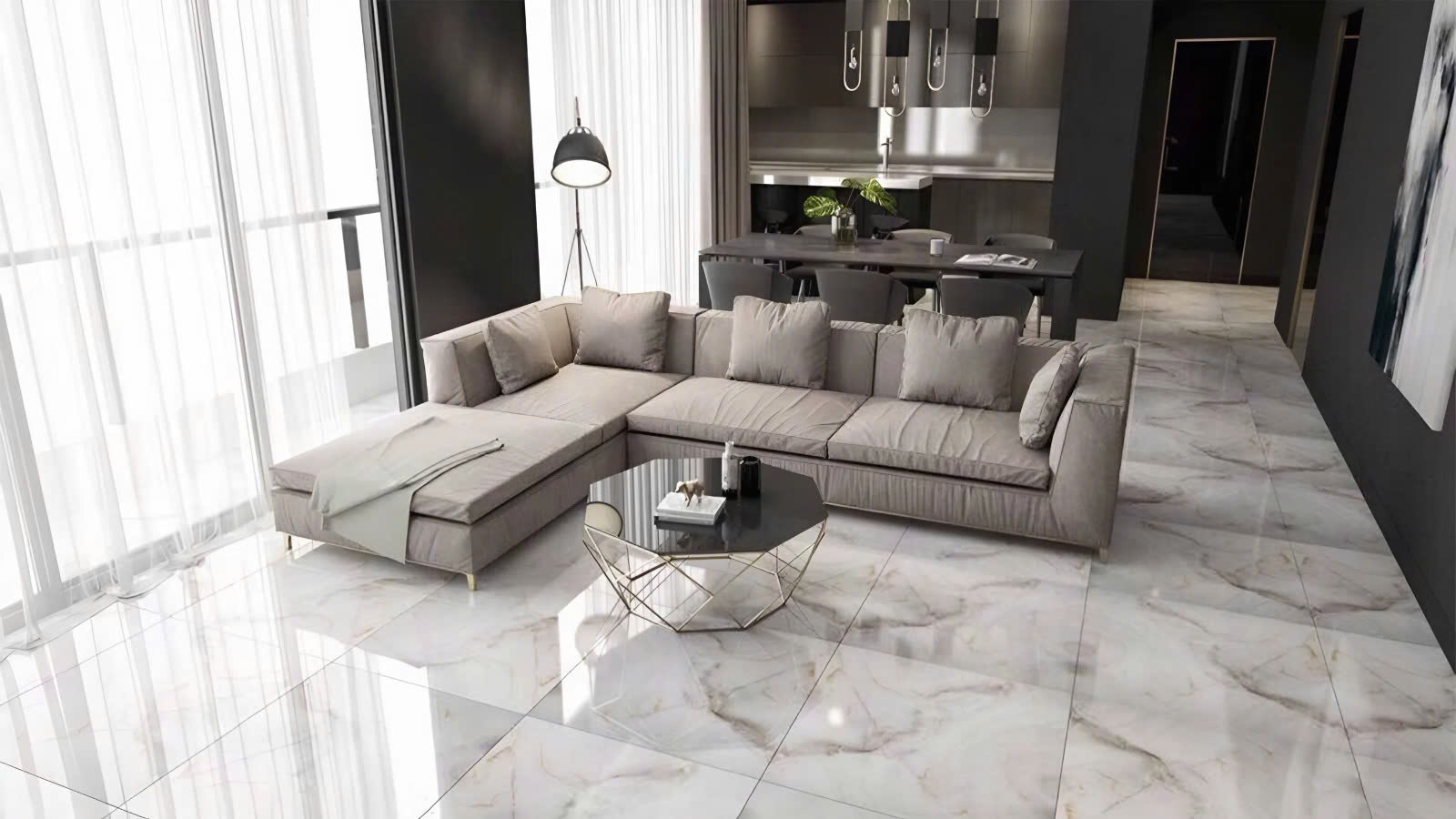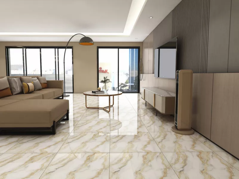 Sự xuất hiện của gạch bóng kính giúp không gian trở nên sang trọng và sáng hơn hẳn. Bề mặt gạch nhẵn bóng, phản chiếu ánh sáng nhẹ nhàng, giúp căn phòng trông rộng rãi, thoáng đãng. Với ưu điểm dễ lau chùi, ít bám bụi, gạch lát nền đẹp 80x80 bóng kính đặc biệt phù hợp với phòng khách, sảnh lớn hay không gian cần vẻ tinh tế và hiện đại.
