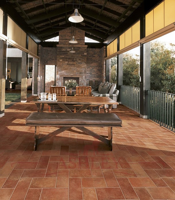 Với vẻ đẹp ấn tượng, nổi bật, gạch lát sân thượng với gam màu đỏ đem lại cho người nhìn cảm giác ấm cúng, sáng sủa hơn. Sẽ thật tuyệt vời nếu bạn biết cách phối màu gạch lót sàn sân thượng, sân vườn nhà mình với nội thất trang trí giả gỗ, mang lại cảm giác hoài cổ nhưng không kém phần sang trọng, đẳng cấp.
