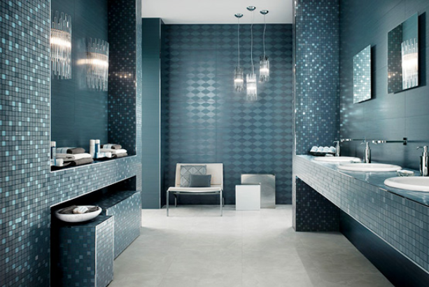 Không chỉ là gạch lát nền, gạch ốp tường cũng nên sử dụng loại gạch ốp nhà tắm an toàn. Gợi ý hàng đầu cho bạn là gạch mosaic đá tự nhiên. Chúng là những mảng gạch được lắp ghép từ những viên đá khá nhỏ nên có khá nhiều đường rãnh (ron) có thể tăng độ ma sát khi tì và sờ vào.