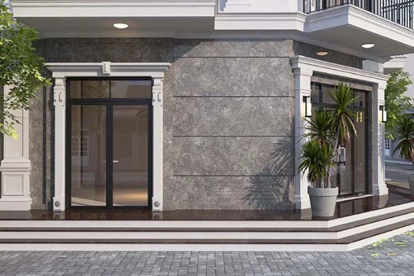Các mẫu gạch giả đá với họa tiết chân thực và màu sắc tinh tế tạo nên điểm nhấn nghệ thuật, làm tăng vẻ đẹp cổ điển và sang trọng cho mặt tiền. Hơn nữa, đặc tính chống trầy xước và chịu nước tốt của gạch giúp bảo vệ công trình hiệu quả trước các tác động của thời tiết.
