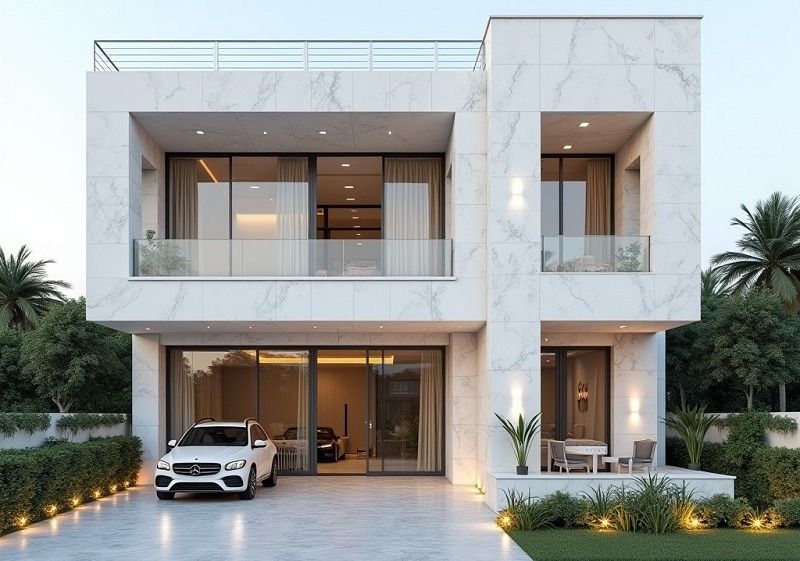 Bên cạnh việc sử dụng các dòng gạch ốp mặt tiền, xu hướng sử dụng đá cũng được rất nhiều người ưa chuộng. Trong số đó, đá marble được xem là một giải pháp ốp lát khu vực mặt tiền vô cùng phổ biến.