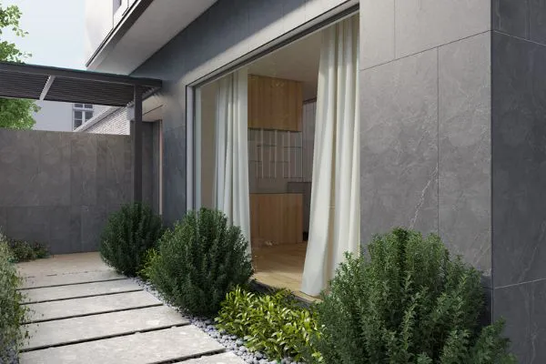 Kích thước 40x80 mang lại sự cân đối, hiện đại và phù hợp với nhiều phong cách kiến trúc khác nhau. Các mẫu gạch ốp mặt tiền vân đá, vân xi măng hay họa tiết 3D còn giúp tăng chiều sâu, tạo điểm nhấn độc đáo cho ngoại thất, biến ngôi nhà trở nên nổi bật và thu hút hơn.