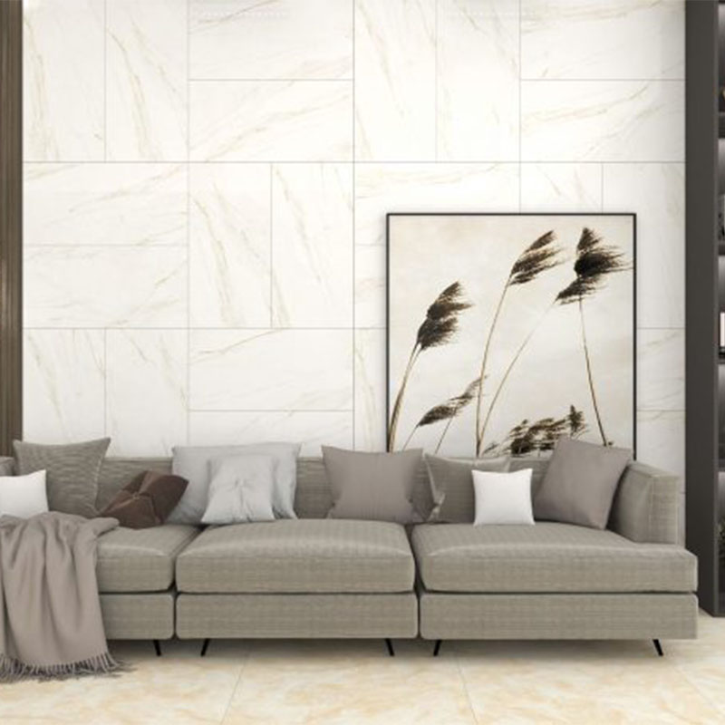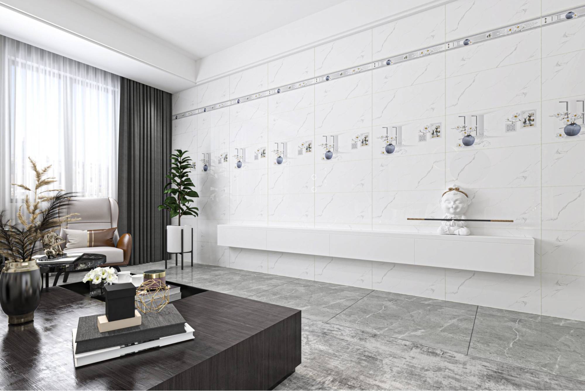Gạch ốp tường 40×80 không chỉ được ưa chuộng trong phòng tắm mà còn là điểm nhấn hoàn hảo cho không gian phòng khách. Với kích thước lớn và bề mặt sang trọng, loại gạch này giúp bức tường trở nên nổi bật, mang đến cảm giác rộng thoáng và hiện đại. Những tông màu thanh lịch cùng hoa văn tinh tế của gạch 40×80 góp phần tạo nên không gian tiếp khách đẳng cấp, thể hiện gu thẩm mỹ tinh tế của gia chủ.