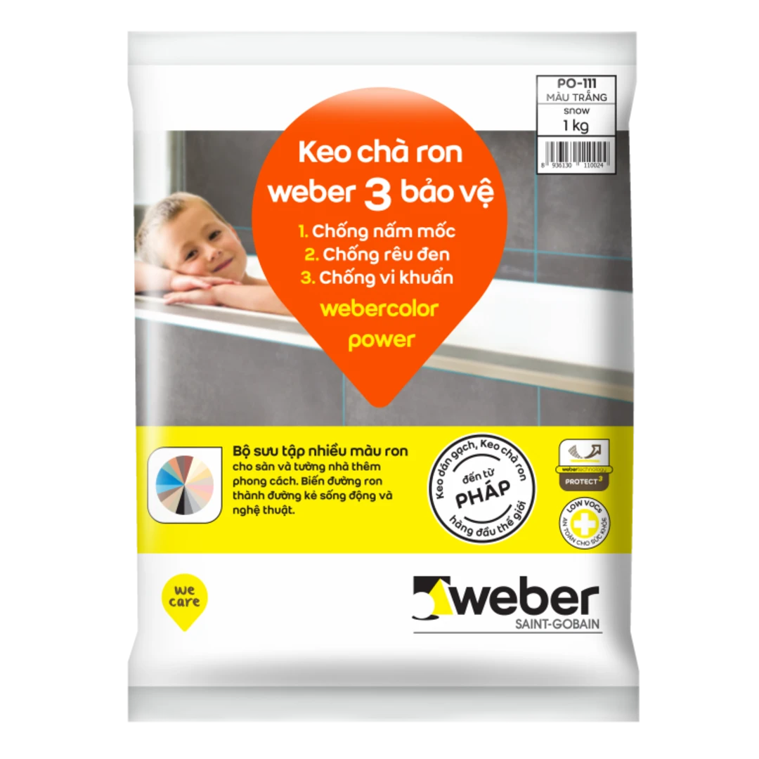 Webercolor power là keo chà ron 3 bảo vệ với khả năng chống nấm mốc, vi khuẩn và rêu đen vượt trội, chuyên dùng cho khu vực ẩm ướt. Đây sẽ là lựa chọn tối ưu để hoàn thiện bề mặt gạch ốp tường cao cấp sau khi thi công với những ưu điểm như: