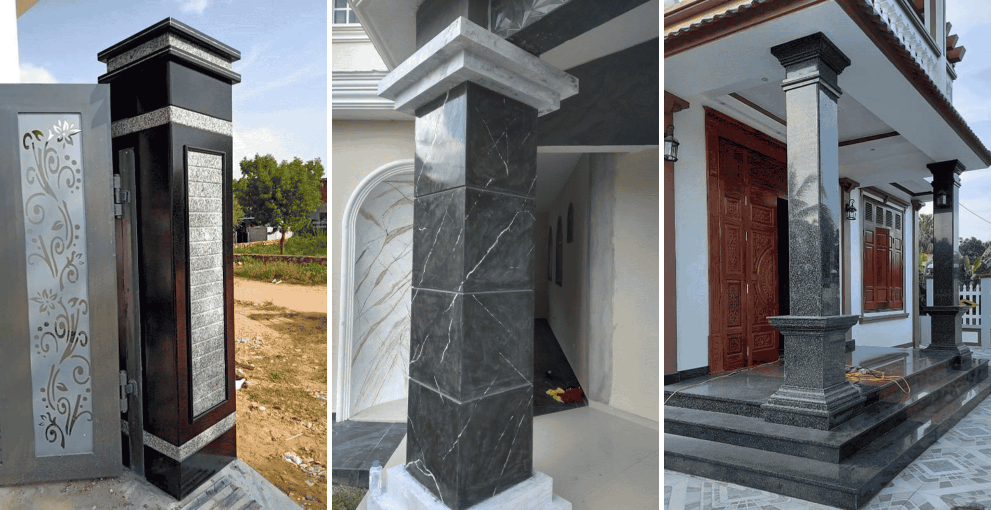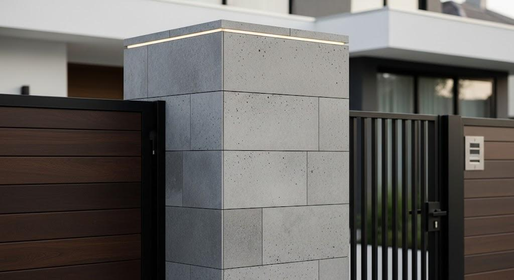 Gạch ốp cổng thường dùng gạch giả đá hoặc gạch màu trung tính, giúp cổng bền bỉ trước thời tiết, dễ vệ sinh và tạo vẻ ngoài trang nhã, đồng bộ với kiến trúc tổng thể.