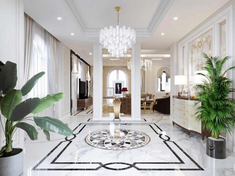 Chọn hoa văn và màu sắc hài hòa: Mỗi phong cách kiến trúc sẽ phù hợp với kiểu hoa văn khác nhau. Không gian cổ điển nên dùng gạch thảm màu đậm, hoa văn đối xứng, còn không gian hiện đại hợp với tông màu nhẹ, họa tiết tối giản. Tránh chọn các mẫu quá sặc sỡ hoặc rối mắt để giữ sự tinh tế cho tổng thể.
