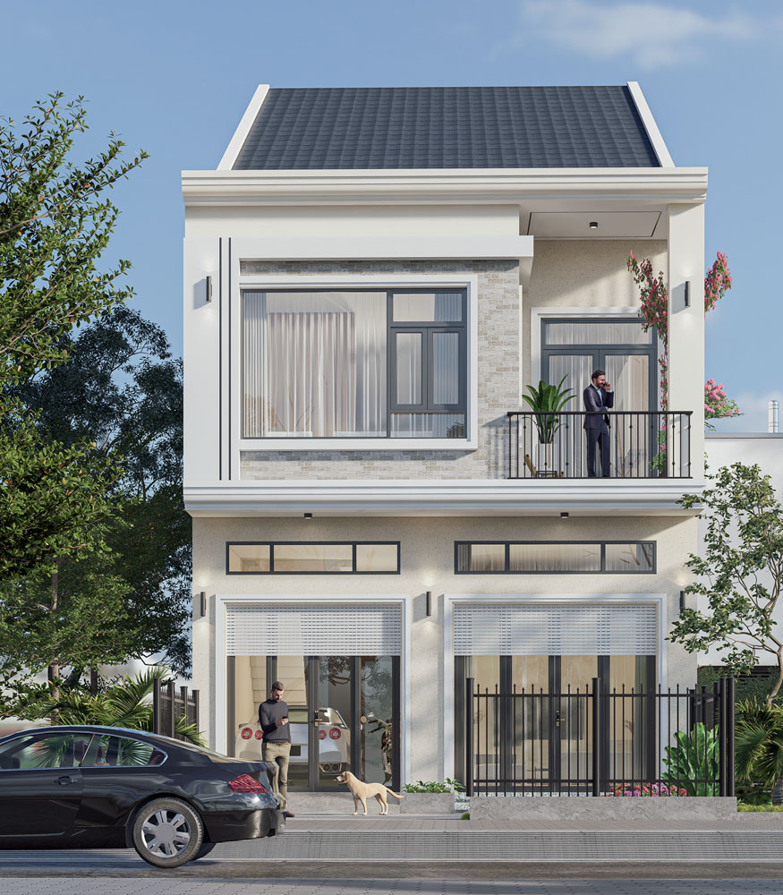 Mẫu nhà phố tân cổ điển 2 tầng là lựa chọn phổ biến cho những gia đình yêu thích phong cách sang trọng nhưng vẫn muốn tối ưu chi phí và diện tích. Thiết kế thường nổi bật với mặt tiền đối xứng, cột trụ vững chắc, mái thái hoặc mái bằng tinh tế, kết hợp gam màu trắng, kem trang nhã. Không gian bên trong được bố trí khoa học, đáp ứng đầy đủ công năng sinh hoạt, mang lại cảm giác ấm cúng và đẳng cấp cho gia chủ.