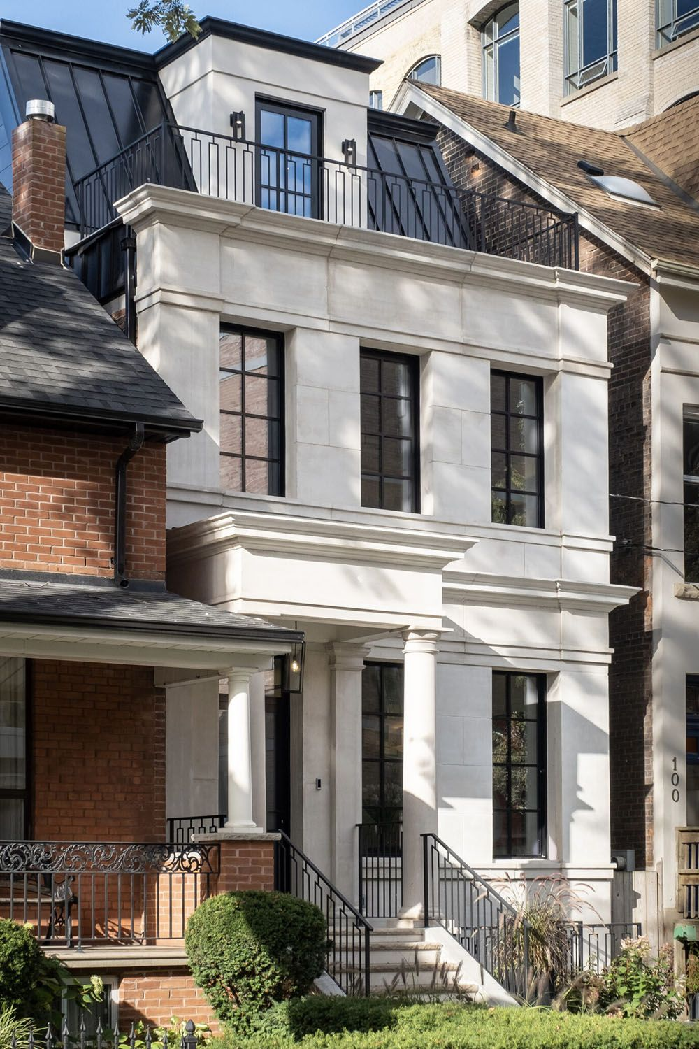 Nhà phố tân cổ điển là phong cách kiến trúc kết hợp giữa vẻ đẹp sang trọng, tinh tế của cổ điển châu Âu và sự tiện nghi, gọn gàng của hiện đại. Thay vì quá cầu kỳ như kiến trúc cổ điển, phong cách này lược bớt chi tiết rườm rà, tập trung vào tỷ lệ, hình khối, đường nét nhẹ nhàng cùng gam màu trung tính như trắng, kem, vàng nhạt.