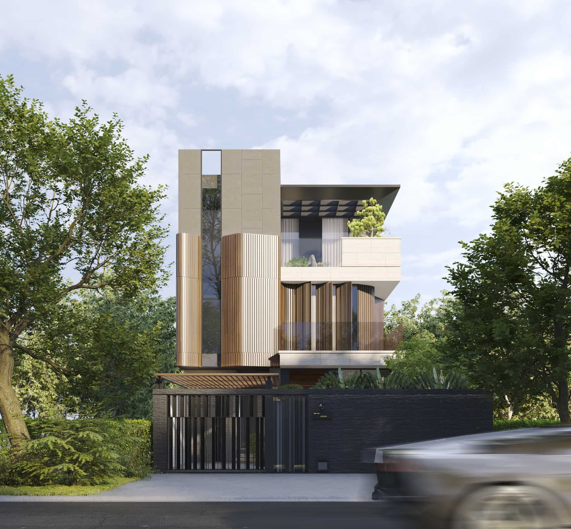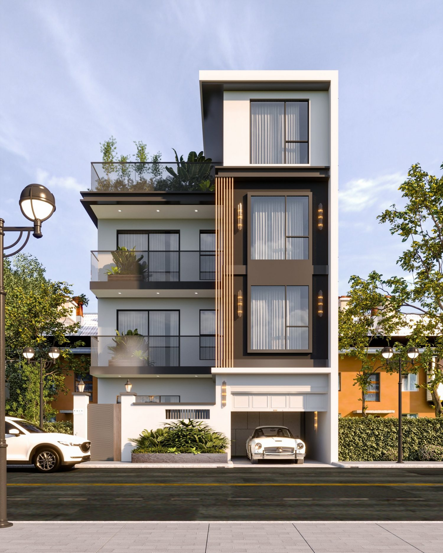 Biệt thự nhà phố thích hợp với không gian đô thị hiện đại. Dù diện tích hạn chế nhưng cách xây dựng hợp lý giúp căn nhà vẫn thoáng và đầy đủ tiện nghi. Các khoảng giếng trời, cửa kính lớn và ban công mở ra ngoài giúp ánh sáng len vào từng góc nhỏ. Nhờ sự cân đối giữa hình khối và màu sắc, biệt thự nhà phố mang lại vẻ tinh tế, hiện đại mà không đánh mất cảm giác riêng tư.
