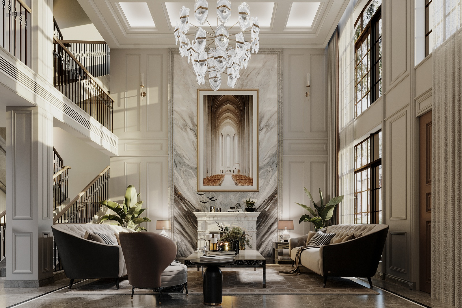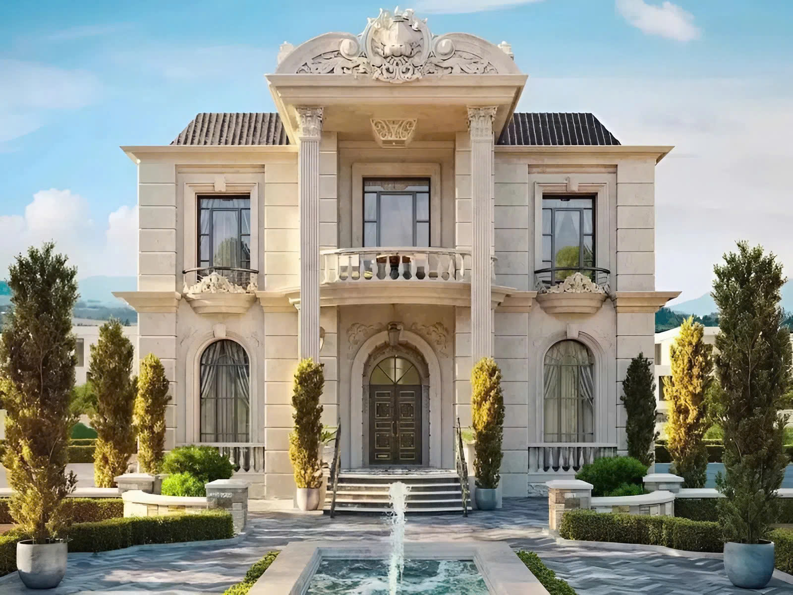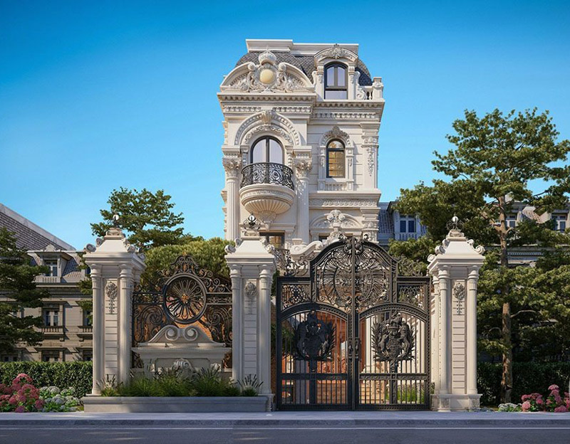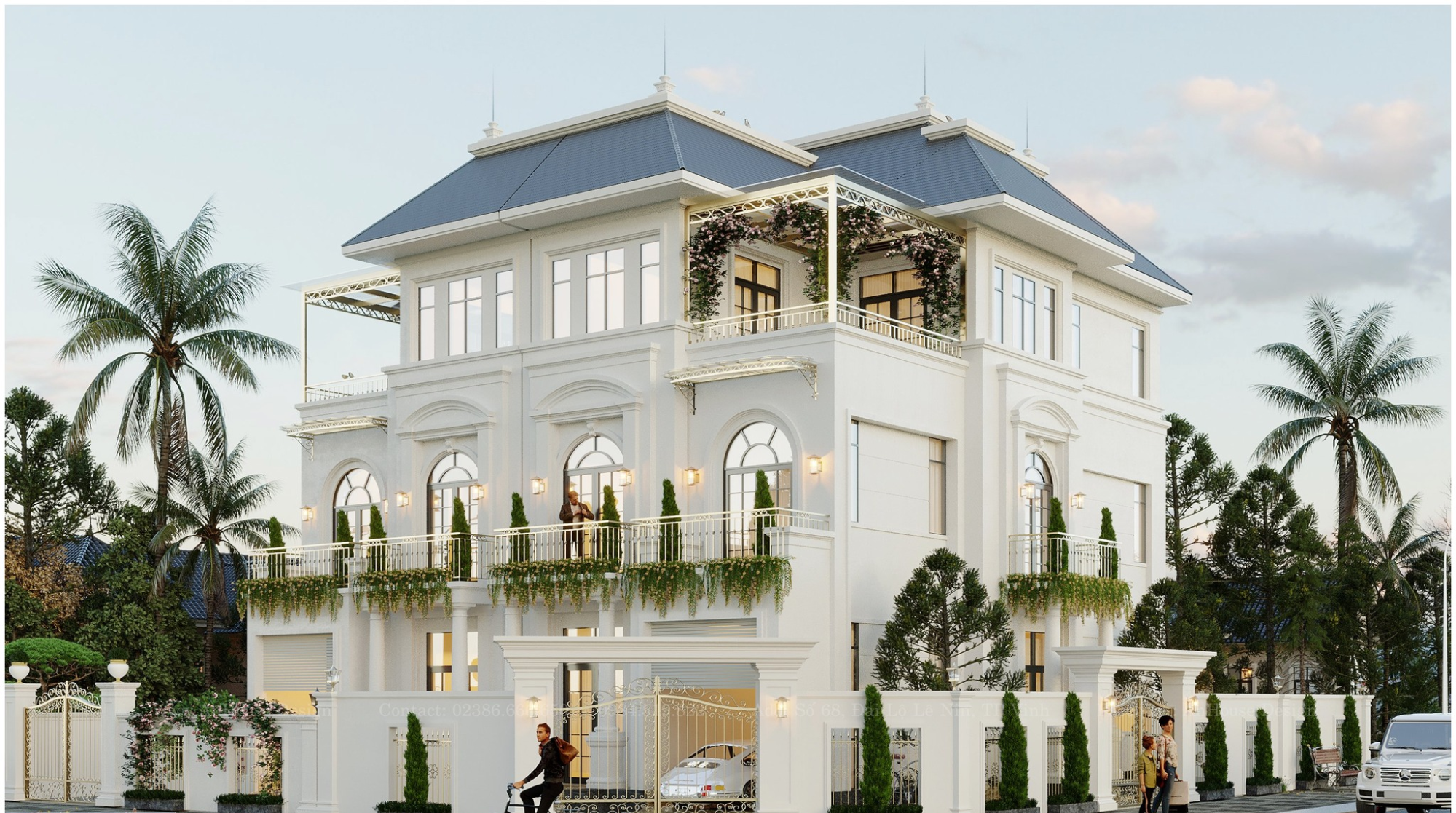 Phong cách cổ điển lấy cảm hứng từ kiến trúc châu Âu, nổi bật với sự đối xứng và những chi tiết được chăm chút kỹ lưỡng. Cột trụ lớn, mái vòm cong cùng các chi tiết tinh xảo tạo nên vẻ bề thế và chuẩn mực. Màu sắc chủ đạo thường là trắng, kem hoặc vàng nhạt giúp công trình toát lên vẻ trang nhã và sang trọng vượt thời gian.