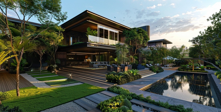 Những căn biệt thự sân vườn luôn mang lại cảm giác thoải mái và gần gũi. Không gian rộng, bốn mặt thoáng cùng vườn cây, hồ cá hay thảm cỏ tạo nên khung cảnh hài hòa với thiên nhiên. Kiểu thiết kế biệt thự này thường xuất hiện ở khu ngoại thành hoặc vùng yên tĩnh, nơi bạn có thể tận hưởng bầu không khí trong lành mỗi ngày.