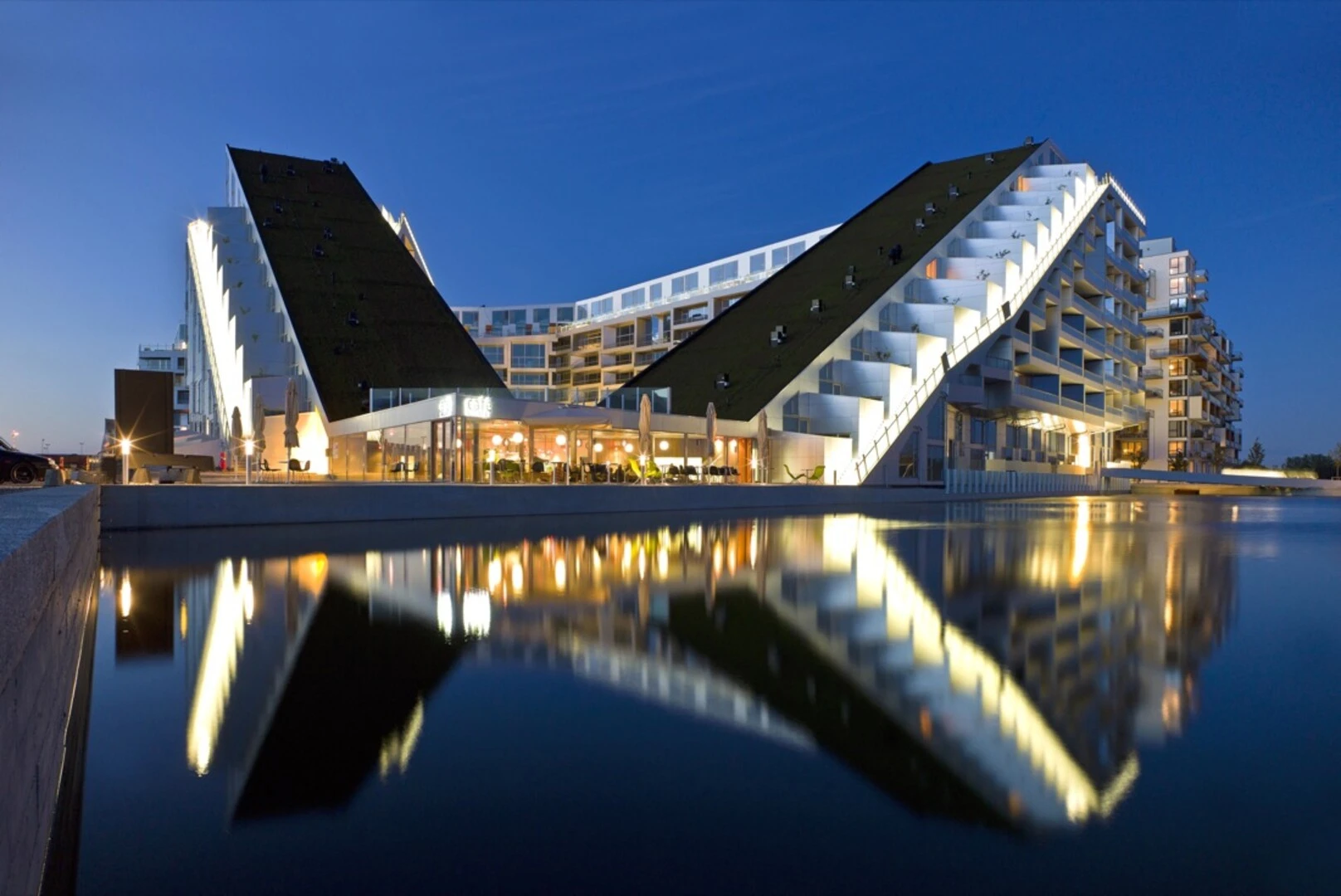 Đây là khu văn phòng và trung tâm thương mại lớn ở Copenhagen. Mặc dù Tòa nhà đa năng 8-Tallet này được xây dựng theo phong cách kiến trúc hiện đại, phản ánh phong cách sống truyền thống ở Đan Mạch. Các bộ phận thiết yếu của 8-Tallet cũng là những mái nhà chéo màu xanh lá cây được thiết kế để giảm các tác động tiêu cực của thành phố và tạo ra một vi khí hậu cho người dân.