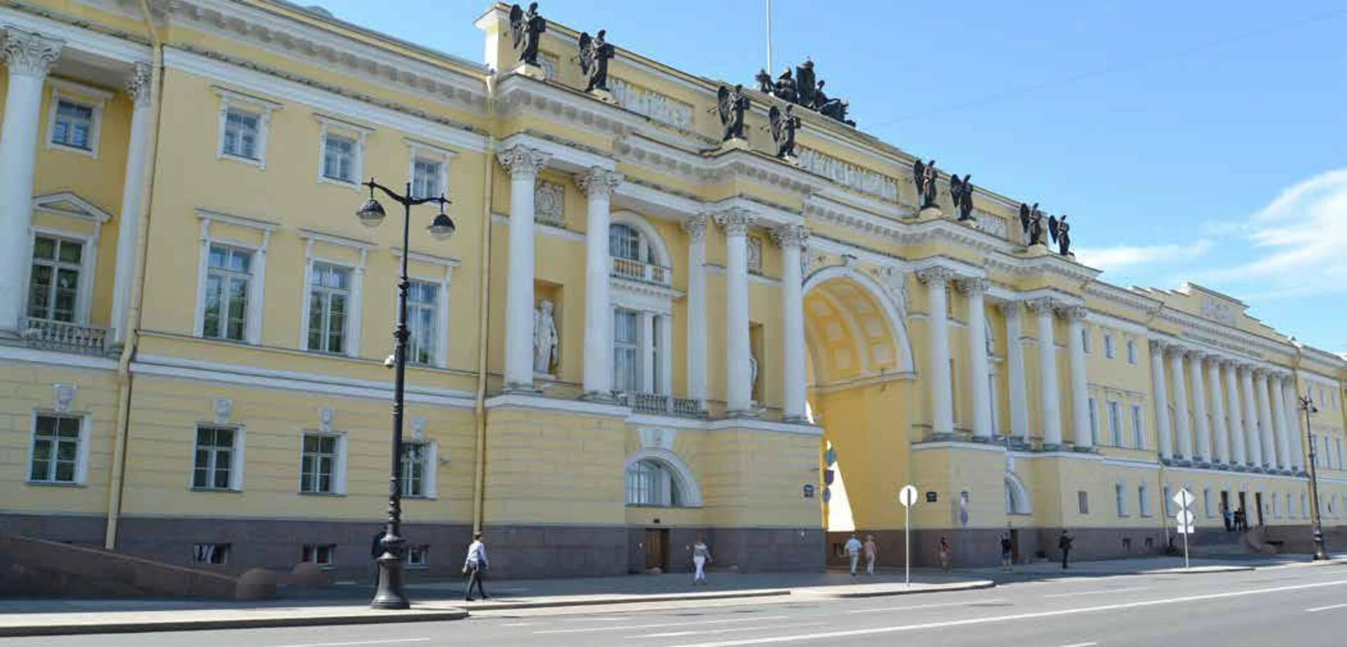 Tòa nhà Quốc hội & Thượng nghị viện là một tòa nhà hùng vĩ theo phong cách tân cổ điển ban đầu thuộc về hai cơ quan hành chính quan trọng nhất của chính phủ Nga - thượng viện và quốc hội. Chiến tranh thế giới thứ hai đã phá hủy đáng kể tòa nhà, và công trình này được cải tạo vào đầu thế kỷ 21. Giữa năm 2007 và 2009, trong quá trình tái thiết, các nhà thiết kế tập trung chủ yếu vào các vấn đề liên quan đến sông Neva gần đó và cải tạo nhờ vào các vật liệu cách ly thủy điện Saint-Gobain Weber.